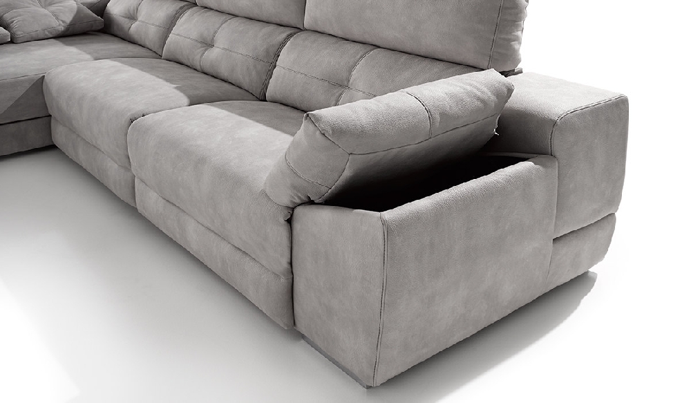 Amplios y confortables sofás, con diferentes arcones ocultos para guardar tus cojines, mantas...